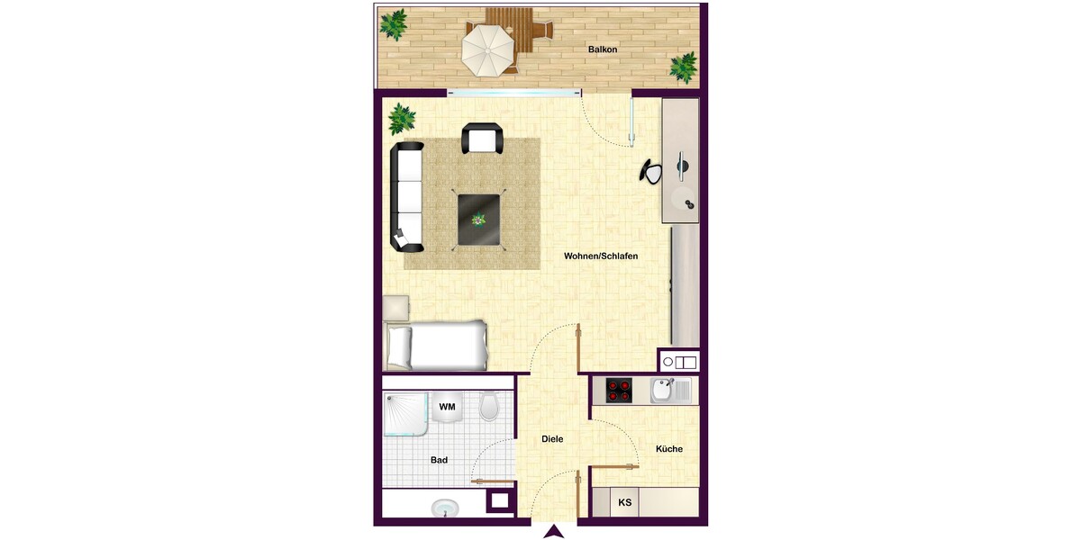 - gut geschnittene 1-Zimmer-Wohnung mit Balkon
